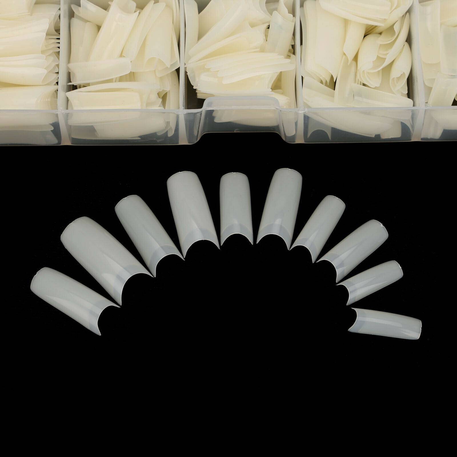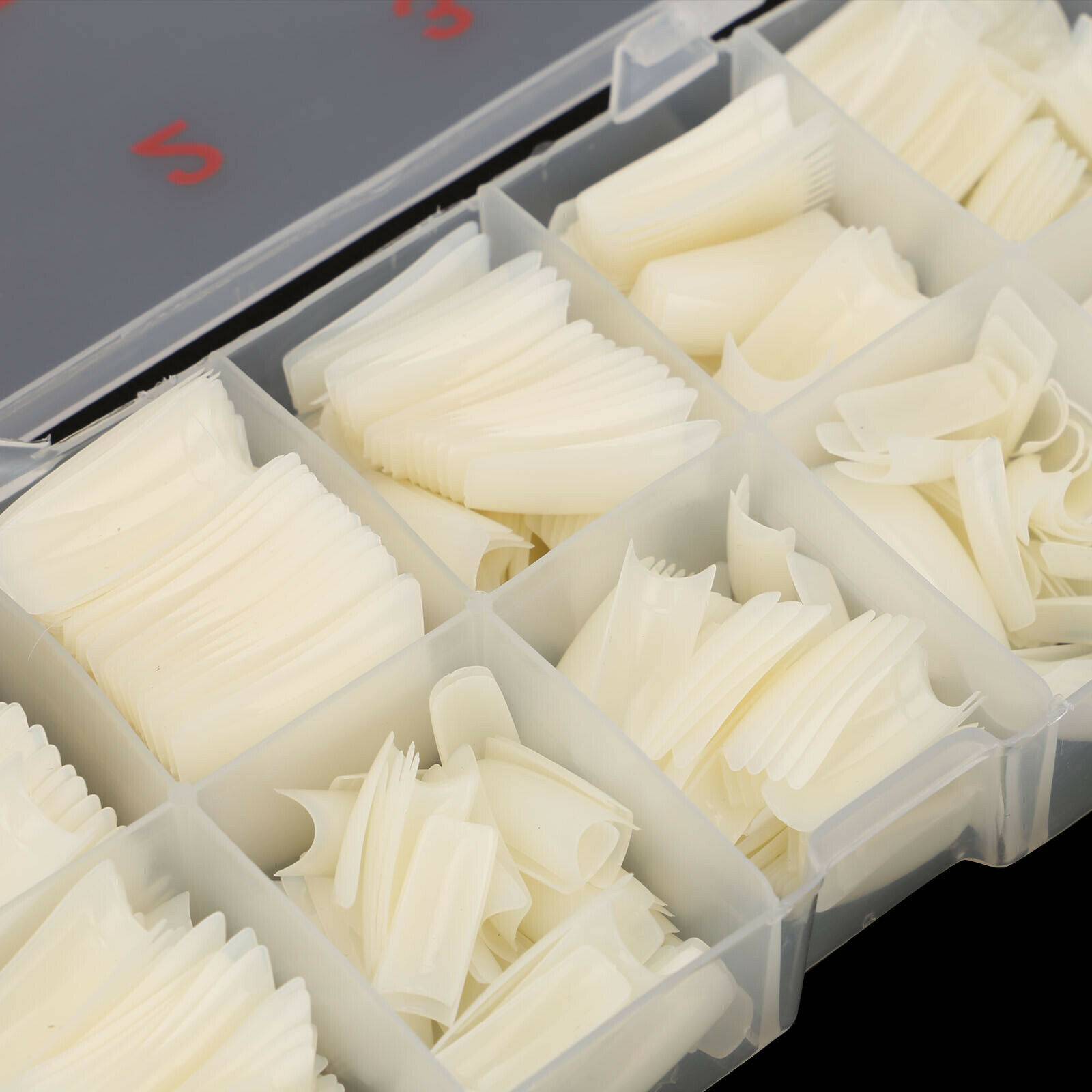 500Pcs Fake French Nail Tips White Clear Stiletto False Gel Pointy Art Acrylic